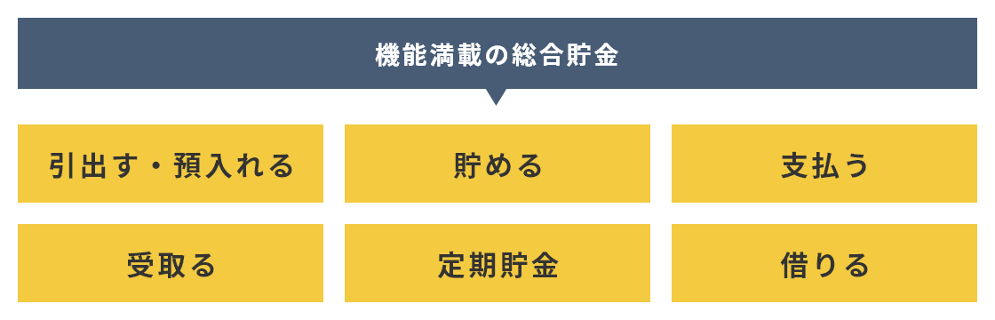 JAの総合口座は「引出す・預入れる」の基本機能に加え、給与や年金の「受取り」、公共料金などの自動引落しといった「支払い」、毎月決まった日に普通貯金から定期積金に振替えて確実に「貯める」など便利な機能満載です。