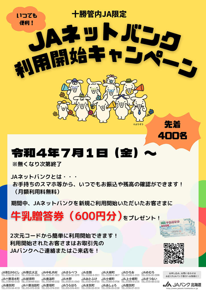 期間中、JAネットバンクを新規ご利用開始いただいたお客さまに